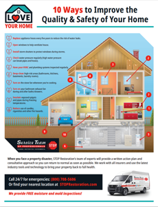 >Whether it's frozen pipes, a leaking hot water heater or no heat due to malfunctioning HVAC systems, elements throughout the year can mean damage and/or costly repairs for your home. Below is a list of 10 easy tasks you can complete to improve the quality and safety of your home. STOP Restoration provides key tips to help you get started. Click the button below to download a free PDF file.