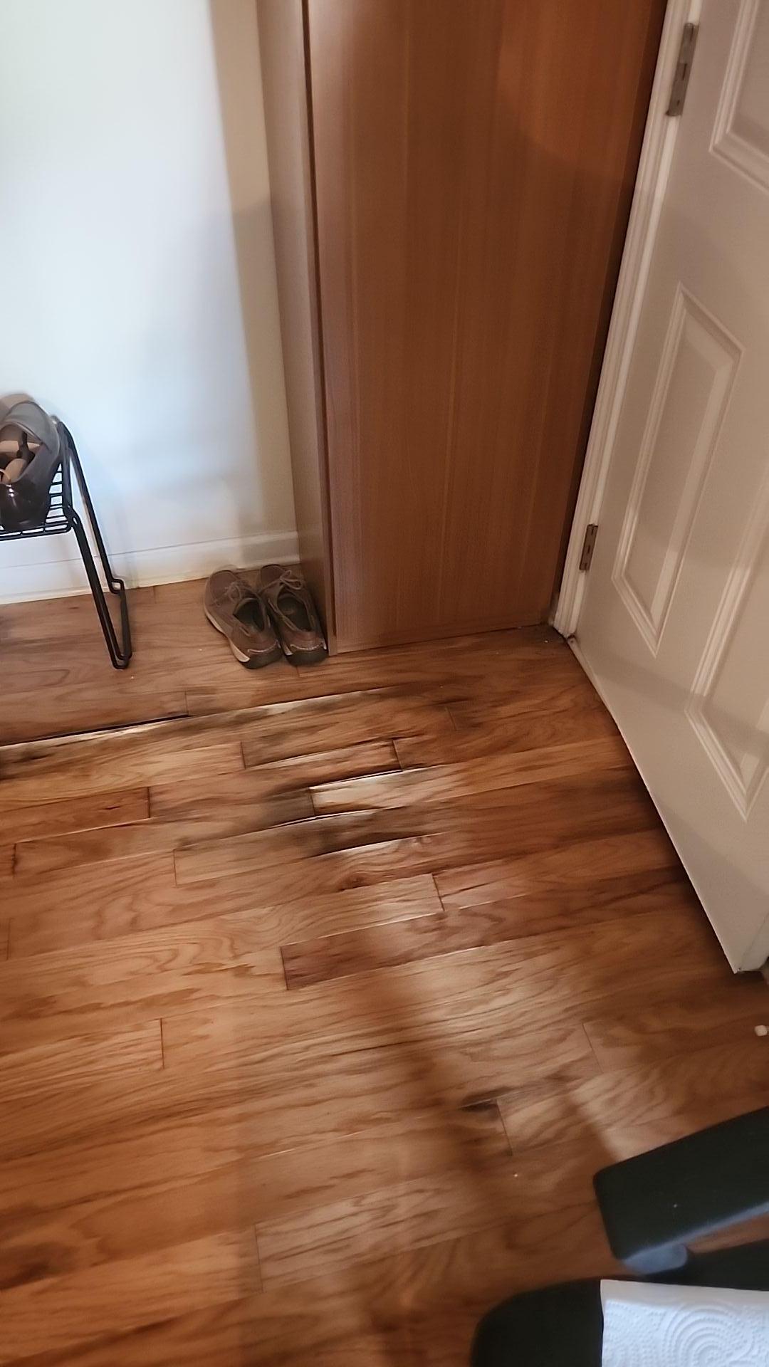 Once the homeowner officially hired STOP Restoration Charlotte North, the insurer finally gave the green light to begin restoration. This wasn’t a minor cleanup – Category 3 water intrusion requires the highest level of training and remediation skill due to the potential presence of harmful contaminants and pathogens. Adding complexity to the job, visual inspections showed dark residue on the flooring. Distinguishing between dried wood glue and microbial growth would demand expertise and certified evaluation techniques.