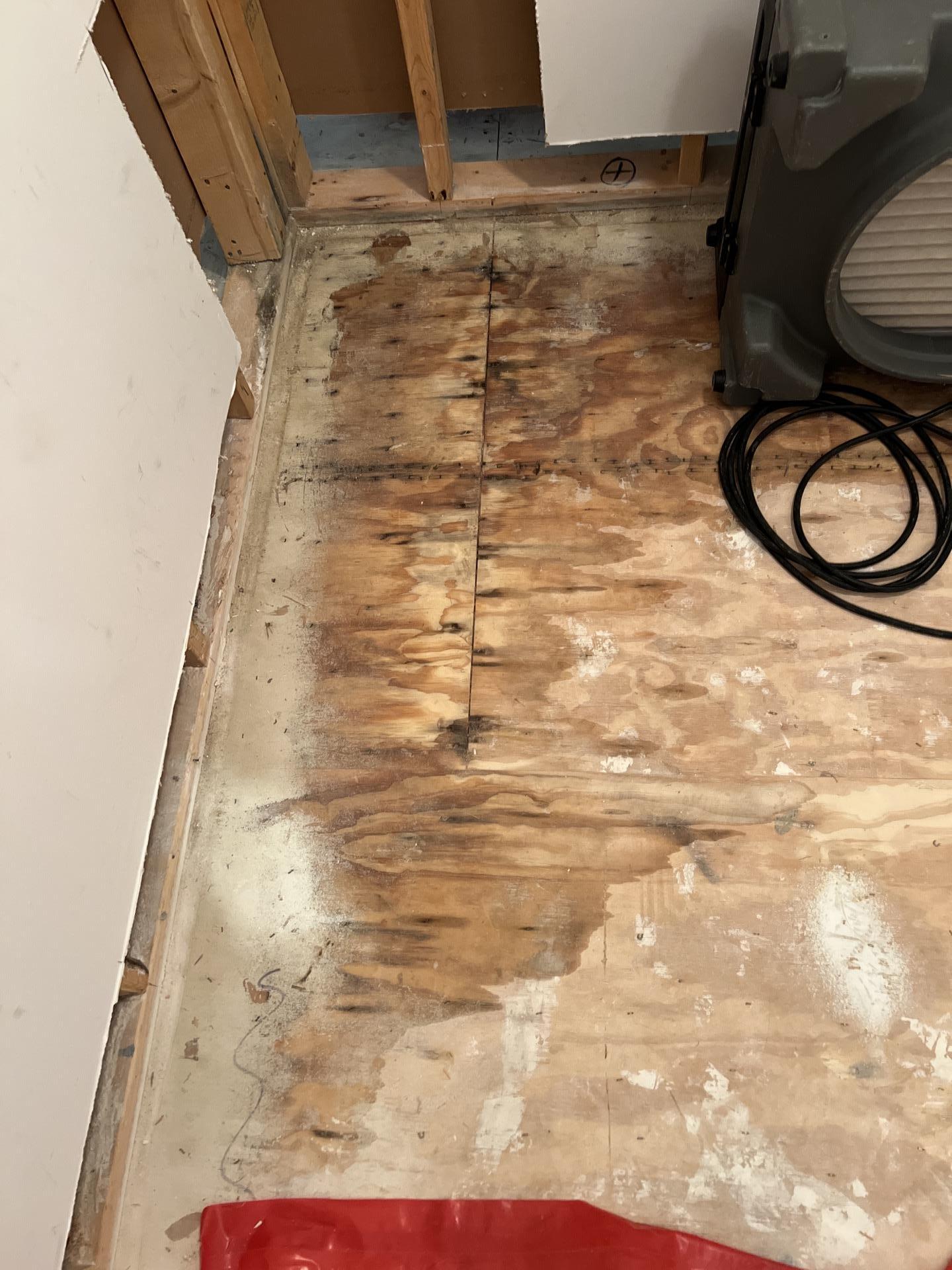 The source of the intrusion was identified during the initial walkthrough, conducted alongside a BNI-affiliated plumber. Together, it was determined that the clothes washer was the cause of the leak. Because the damage affected both floors and involved structural materials, rapid intervention was critical to prevent further damage.