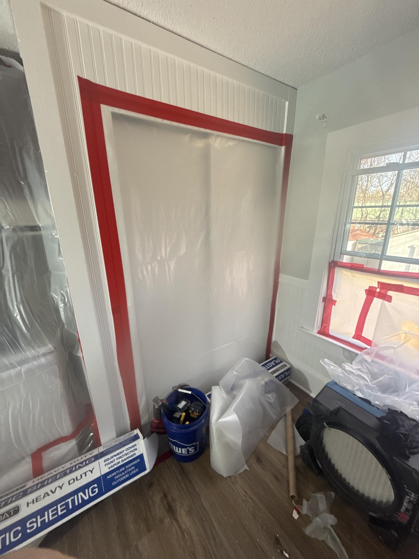 - Containment Setup: We built full containment using 6-mil polyethylene sheeting, isolating all affected areas to prevent cross-contamination during remediation.