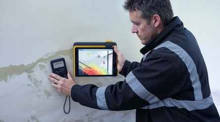 - Finding hidden moisture behind walls, under flooring, or within insulation